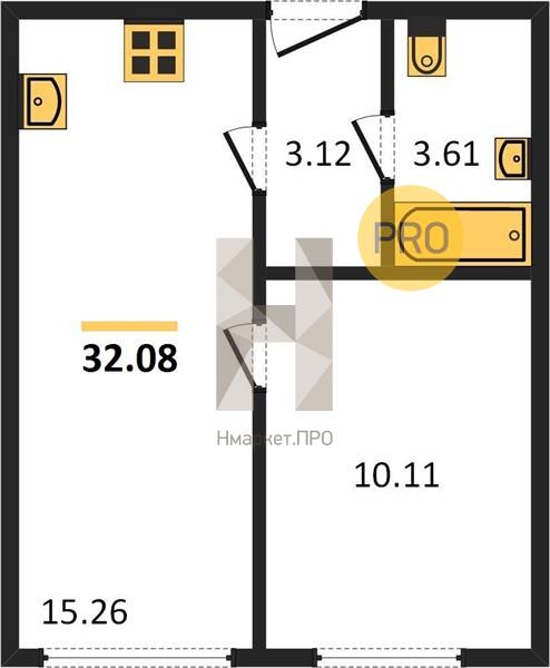 Квартира: 1 к 32,08 кв.м., 18 этаж в комплексе Amundsen, 2 очередь, корп.1, сдача: 2кв. , этажей: 24, адрес Екатеринбург г., Амундсена ул., , Застройщик: Прогресс.