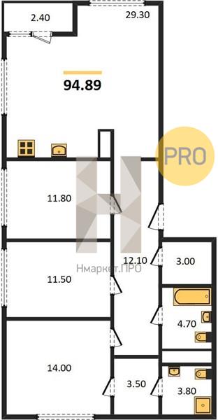 Квартира: 3 к 94,74 кв.м., 4 этаж в комплексе Amundsen, 3 очередь, корп.2, сдача: 1кв. , этажей: 14, адрес Екатеринбург г., Амундсена ул., , Застройщик: Прогресс.