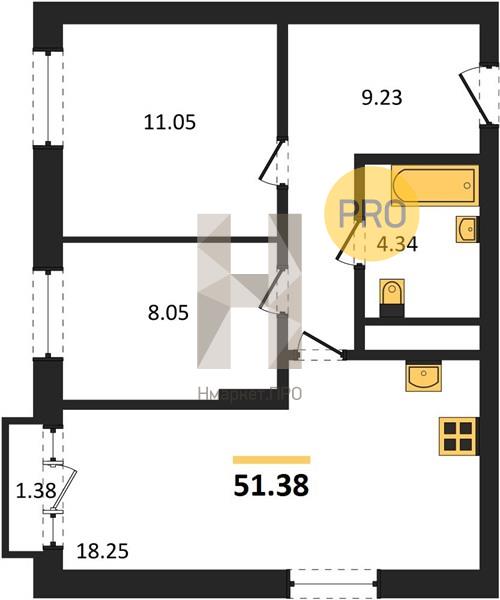 Квартира: 2 к 51,38 кв.м., 5 этаж в комплексе Amundsen, 2 очередь, корп.1, сдача: 2кв. , этажей: 24, адрес Екатеринбург г., Амундсена ул., , Застройщик: Прогресс.