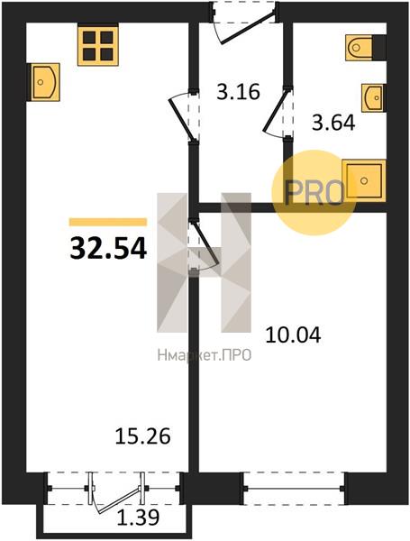 Квартира: 1 к 32,54 кв.м., 8 этаж в комплексе Amundsen, 2 очередь, корп.1, сдача: 2кв. , этажей: 24, адрес Екатеринбург г., Амундсена ул., , Застройщик: Прогресс.