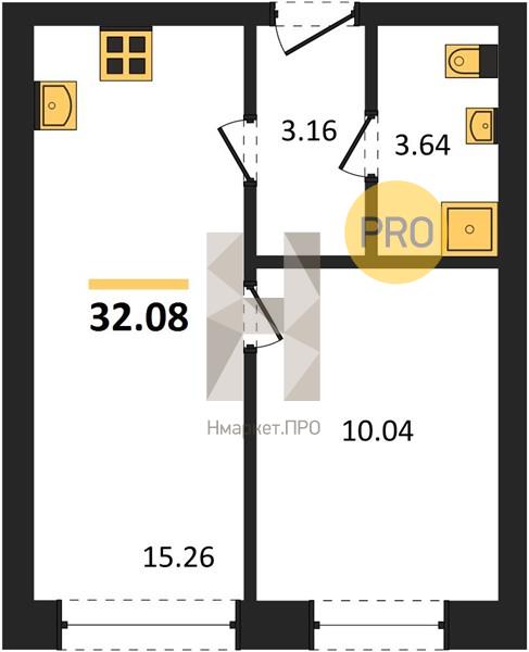 Квартира: 1 к 32,08 кв.м., 10 этаж в комплексе Amundsen, 2 очередь, корп.1, сдача: 2кв. , этажей: 24, адрес Екатеринбург г., Амундсена ул., , Застройщик: Прогресс.