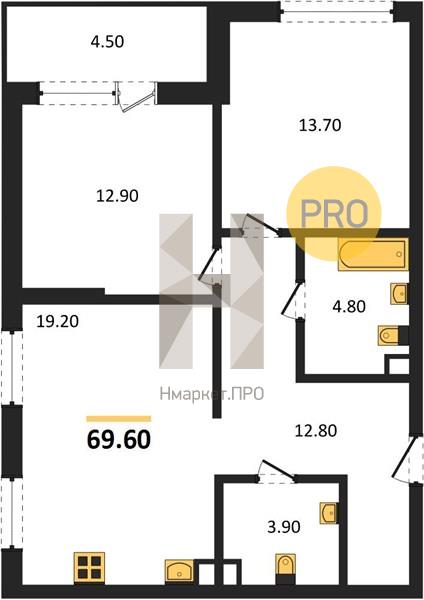 Квартира: 2 к 69,60 кв.м., 2 этаж в комплексе Да на Амундсена, 1 очередь, корп.1, сдача: 2кв. , этажей: 31, адрес Екатеринбург г., Амундсена ул., д. 16, Застройщик: Свобода мысли.