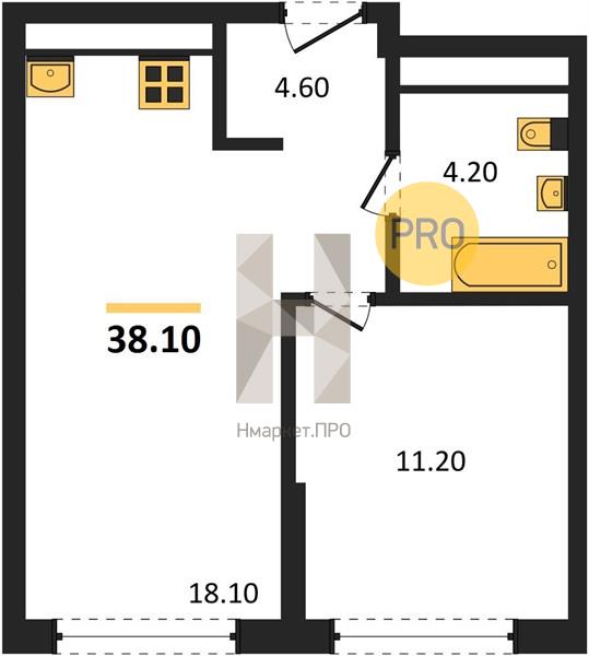 Квартира: 1 к 38,10 кв.м., 22 этаж в комплексе Да на Амундсена, 1 очередь, корп.1, сдача: 2кв. , этажей: 31, адрес Екатеринбург г., Амундсена ул., д. 16, Застройщик: Свобода мысли.