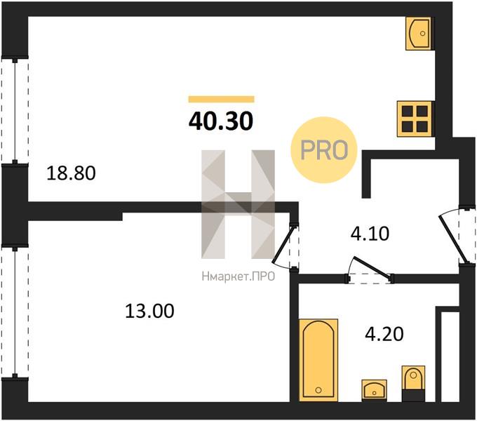 | Общая площадь: | 40.30 м2 |