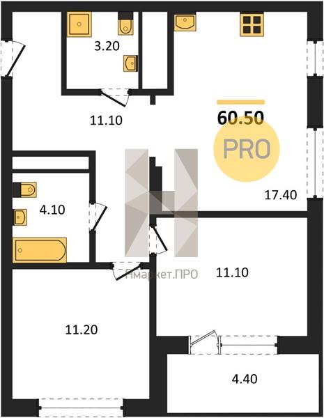 | Общая площадь: | 60.50 м2 |