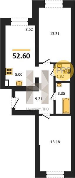 Квартира: 2 к 52,60 кв.м., 3 этаж в комплексе Твоя Привилегия, 1 очередь, корп.1.1, сдача: 4кв. , этажей: 4, адрес Екатеринбург г., Амундсена ул., д. 165, Застройщик: СЗ 45-й Квартал.