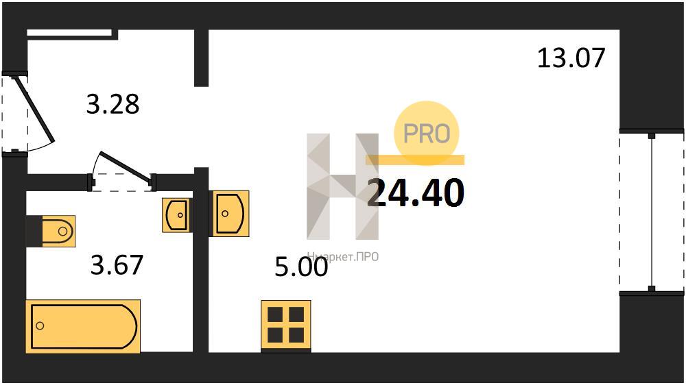 Студия: 24,40 кв.м., 4 этаж в комплексе Твоя Привилегия, 1 очередь, корп.1.1, сдача: 4кв. , этажей: 4, адрес Екатеринбург г., Амундсена ул., д. 165, Застройщик: СЗ 45-й Квартал.