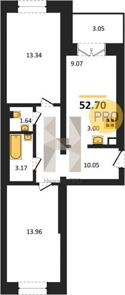 Общая площадь: 52.70 м2
