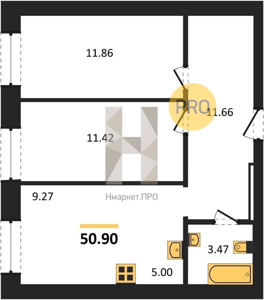 | Общая площадь: | 50.90 м2 |