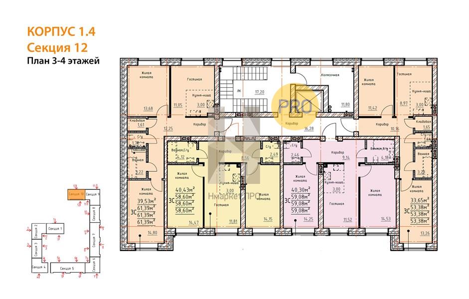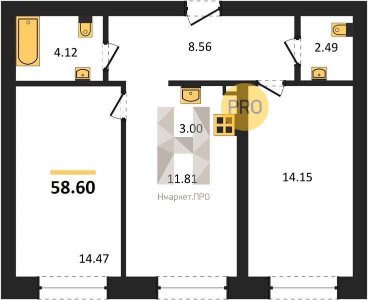Квартира: 2 к 57,50 кв.м., 3 этаж в комплексе Твоя Привилегия, 1 очередь, корп.1.4, сдача: 2кв. , этажей: 4, адрес Екатеринбург г., Амундсена ул., д. 183, Застройщик: СЗ 45-й Квартал.