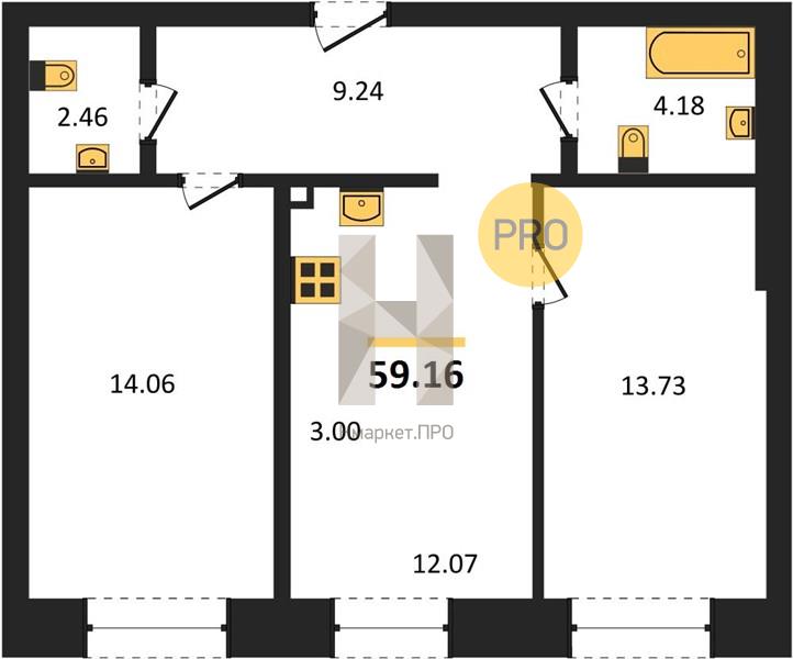 Квартира: 2 к 57,60 кв.м., 4 этаж в комплексе Твоя Привилегия, 1 очередь, корп.1.4, сдача: 2кв. , этажей: 4, адрес Екатеринбург г., Амундсена ул., д. 183, Застройщик: СЗ 45-й Квартал.