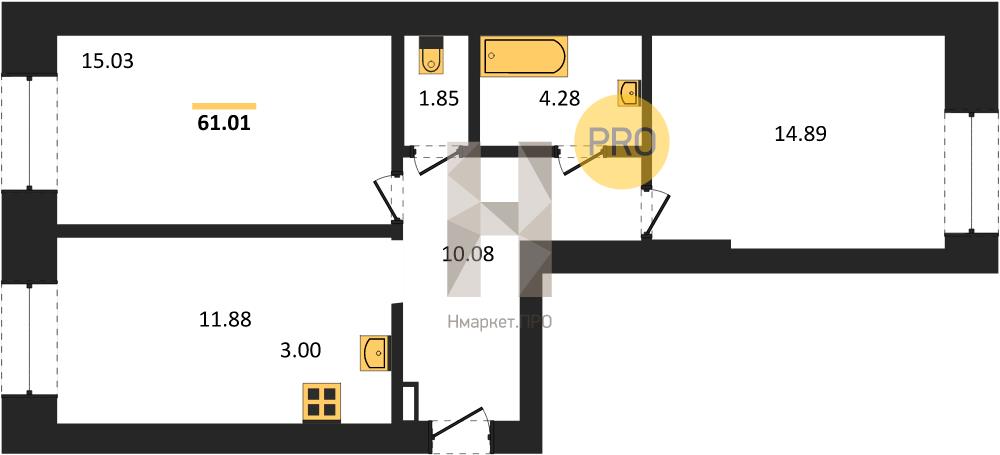 Квартира: 2 к 61,60 кв.м., 2 этаж в комплексе Твоя Привилегия, 1 очередь, корп.1.4, сдача: 2кв. , этажей: 4, адрес Екатеринбург г., Амундсена ул., д. 183, Застройщик: СЗ 45-й Квартал.