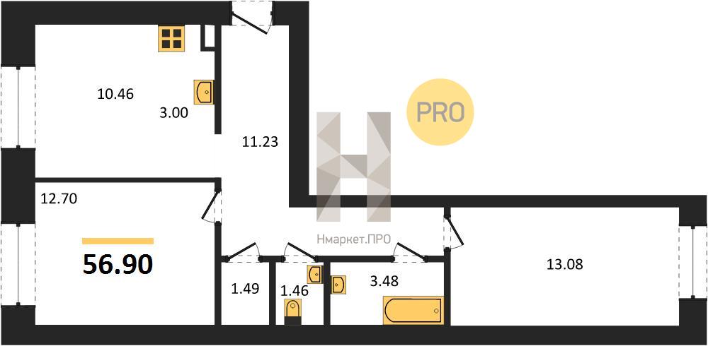 | Общая площадь: | 56.90 м2 |