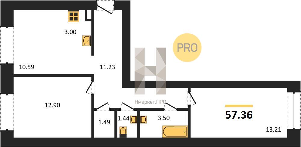 | Общая площадь: | 57.40 м2 |