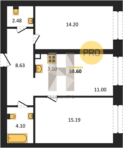 Квартира: 2 к 57,30 кв.м., 3 этаж в комплексе Твоя Привилегия, 1 очередь, корп.1.4, сдача: 2кв. , этажей: 4, адрес Екатеринбург г., Амундсена ул., д. 183, Застройщик: СЗ 45-й Квартал.