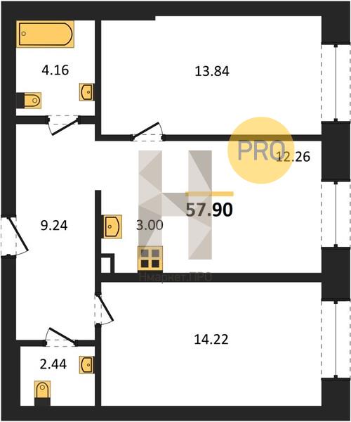 Квартира: 2 к 57,90 кв.м., 4 этаж в комплексе Твоя Привилегия, 1 очередь, корп.1.4, сдача: 2кв. , этажей: 4, адрес Екатеринбург г., Амундсена ул., д. 183, Застройщик: СЗ 45-й Квартал.