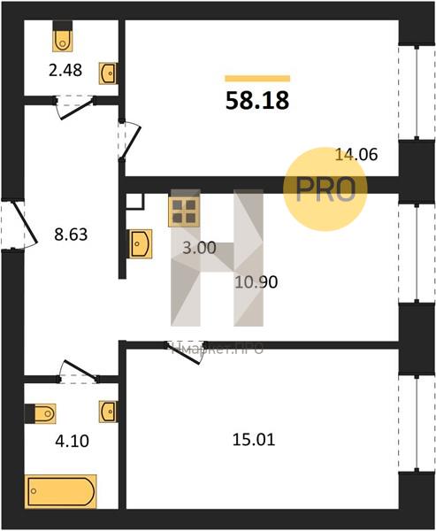 | Общая площадь: | 57.20 м2 |