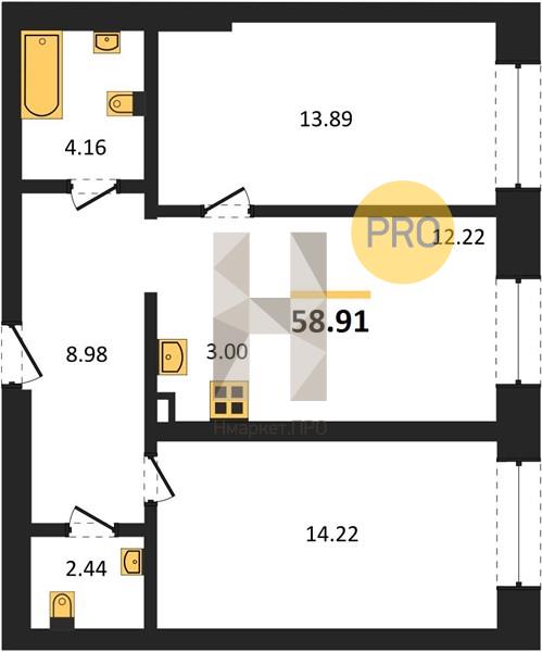 Квартира: 2 к 58,00 кв.м., 3 этаж в комплексе Твоя Привилегия, 1 очередь, корп.1.4, сдача: 2кв. , этажей: 4, адрес Екатеринбург г., Амундсена ул., д. 183, Застройщик: СЗ 45-й Квартал.