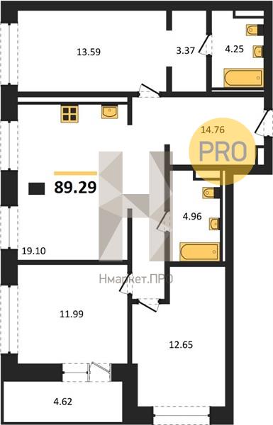 | Общая площадь: | 89.29 м2 |