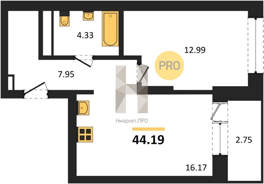 Квартира: 1 к 44,19 кв.м., 24 этаж в комплексе Северное Сияние, 9 очередь, корп.1, сдача: 4кв. , этажей: 25, адрес Екатеринбург г., Авангардная ул., , Застройщик: АтомСтройКомплекс.