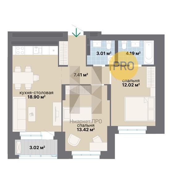 Квартира: 2 к 61,97 кв.м., 12 этаж в комплексе Лайв, 2 очередь, корп.2, сдача: 4кв. , этажей: 25, адрес Екатеринбург г., Айвазовского ул., , Застройщик: АтомСтройКомплекс.
