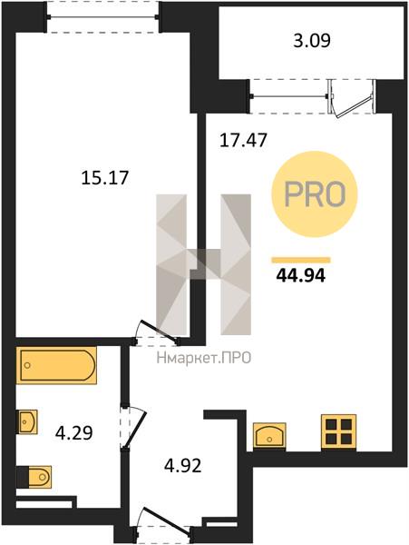 | Общая площадь: | 44.94 м2 |