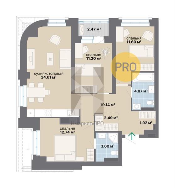 | Площадь кухни: | 24.61 м2 |
