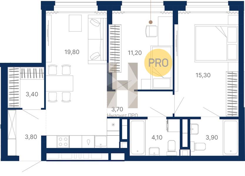 Квартира: 2 к 65,20 кв.м., 3 этаж в комплексе Атлас Лайн, 1 очередь, корп.С4, сдача: 1кв. , этажей: 6, адрес Екатеринбург г., Айвазовского ул., , Застройщик: ATLAS Development.