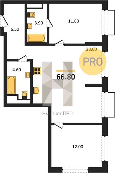 Квартира: 2 к 66,80 кв.м., 11 этаж в комплексе Атлас Лайн, 1 очередь, корп.С5, сдача: 1кв. , этажей: 29, адрес Екатеринбург г., Айвазовского ул., , Застройщик: ATLAS Development.