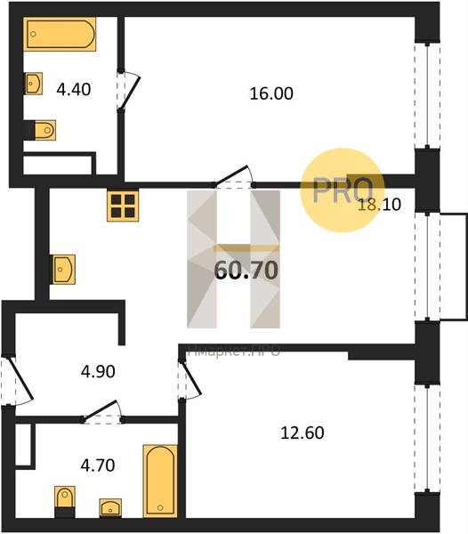 | Общая площадь: | 60.70 м2 |