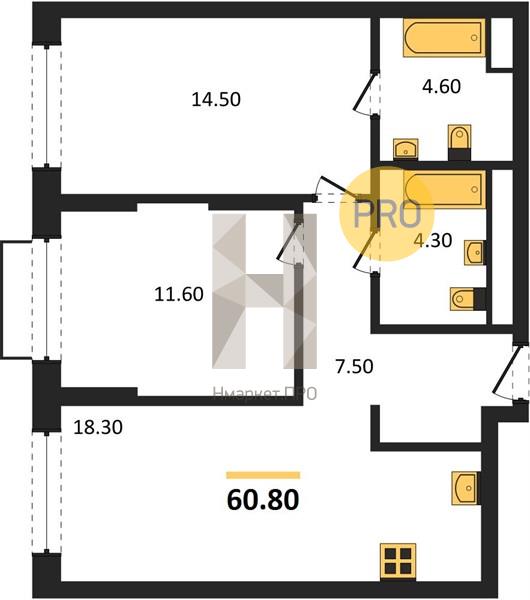 Квартира: 2 к 60,80 кв.м., 16 этаж в комплексе Атлас Лайн, 1 очередь, корп.С5, сдача: 1кв. , этажей: 29, адрес Екатеринбург г., Айвазовского ул., , Застройщик: ATLAS Development.