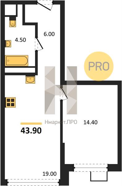 Квартира: 1 к 43,90 кв.м., 19 этаж в комплексе Атлас Лайн, 1 очередь, корп.С5, сдача: 1кв. , этажей: 29, адрес Екатеринбург г., Айвазовского ул., , Застройщик: ATLAS Development.