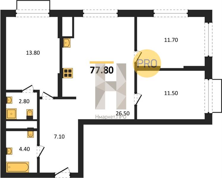 | Общая площадь: | 77.80 м2 |