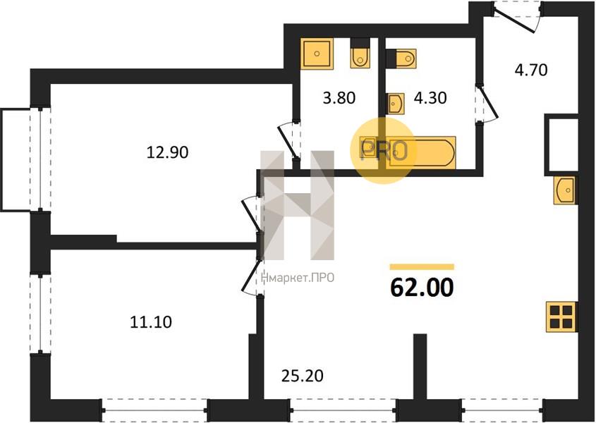 Квартира: 2 к 62,00 кв.м., 23 этаж в комплексе Атлас Лайн, 1 очередь, корп.С5, сдача: 1кв. , этажей: 29, адрес Екатеринбург г., Айвазовского ул., , Застройщик: ATLAS Development.