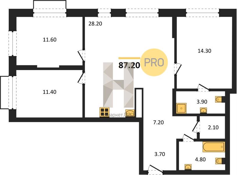 Квартира: 3 к 87,20 кв.м., 25 этаж в комплексе Атлас Лайн, 1 очередь, корп.С5, сдача: 1кв. , этажей: 29, адрес Екатеринбург г., Айвазовского ул., , Застройщик: ATLAS Development.