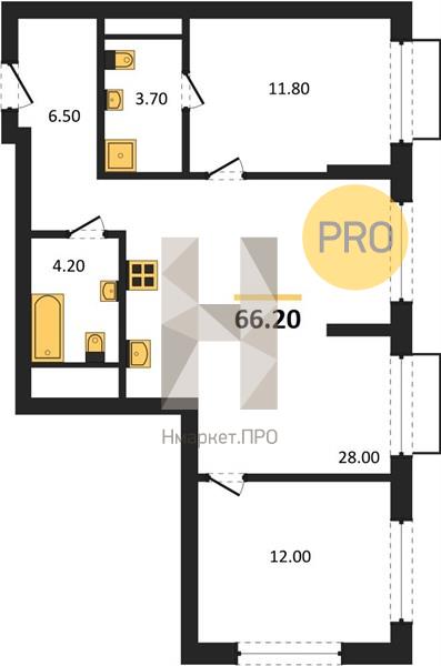 | Общая площадь: | 66.20 м2 |