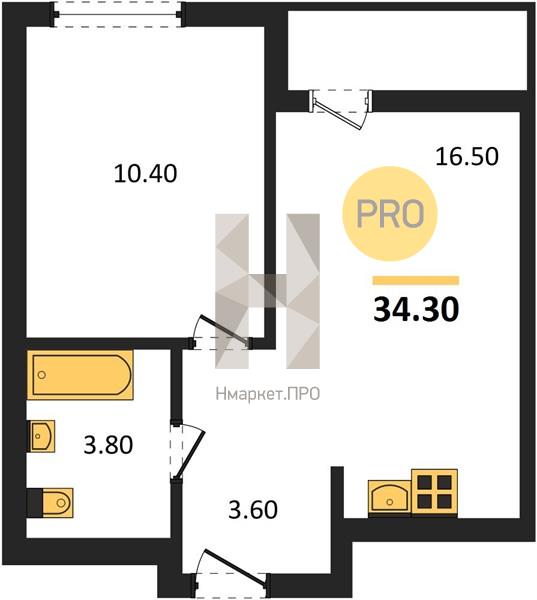 | Общая площадь: | 34.30 м2 |