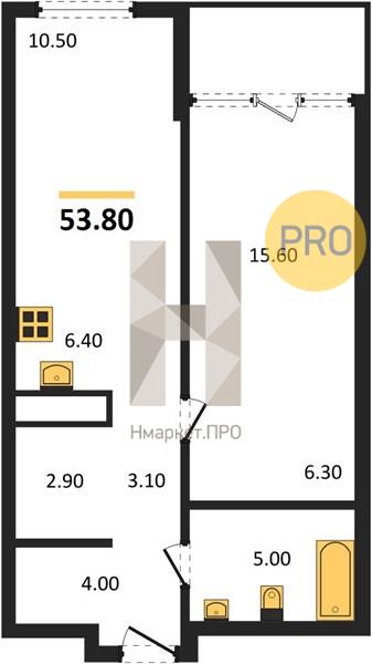 Квартира: 1 к 53,80 кв.м., 11 этаж в комплексе Парк Победы, 2 очередь, корп.7, сдача: 1кв. , этажей: 23, адрес Екатеринбург г., Бакинских комиссаров ул., д. 7, Застройщик: PRINZIP недвижимость.