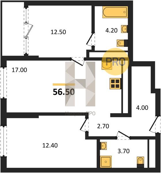 | Общая площадь: | 56.50 м2 |