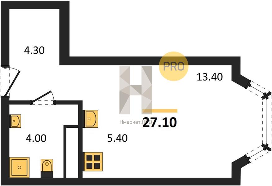 Студия: 27,10 кв.м., 4 этаж в комплексе Парк Победы, 2 очередь, корп.7, сдача: 1кв. , этажей: 23, адрес Екатеринбург г., Бакинских комиссаров ул., д. 7, Застройщик: PRINZIP недвижимость.