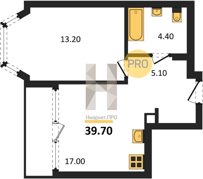 Квартира: 1 к 39,70 кв.м., 7 этаж в комплексе Парк Победы, 2 очередь, корп.7, сдача: 1кв. , этажей: 23, адрес Екатеринбург г., Бакинских комиссаров ул., д. 7, Застройщик: PRINZIP недвижимость.