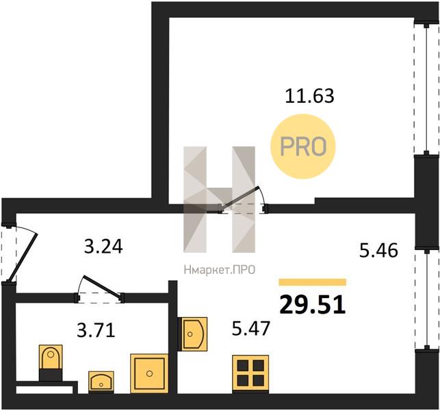 Квартира: 1 к 29,51 кв.м., 14 этаж в комплексе Сибирский сад, 3 очередь, корп.Арт-Квартал, сдача: 3кв. , этажей: 25, адрес Екатеринбург г., Базовый пер., , Застройщик: Страна Девелопмент.
