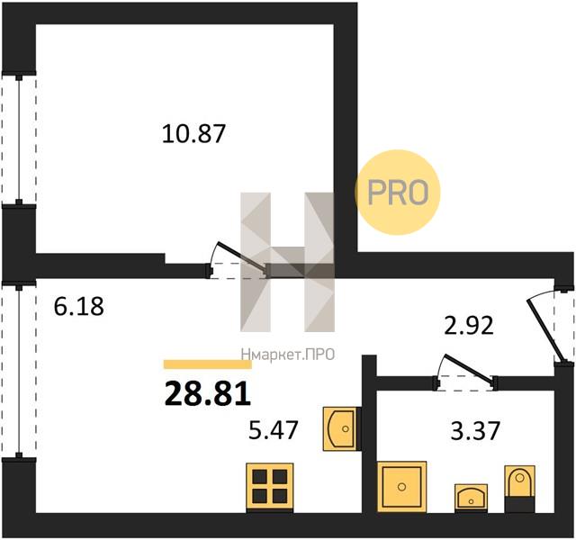 Квартира: 1 к 28,81 кв.м., 16 этаж в комплексе Сибирский сад, 3 очередь, корп.Арт-Квартал, сдача: 3кв. , этажей: 25, адрес Екатеринбург г., Базовый пер., , Застройщик: Страна Девелопмент.