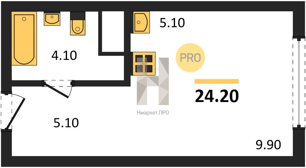 Студия: 24,20 кв.м., 13 этаж в комплексе Парк Культуры, 1 очередь, корп.1, сдача: 1кв. , этажей: 32, адрес Екатеринбург г., Базовый пер., д. 1, Застройщик: PRINZIP недвижимость.
