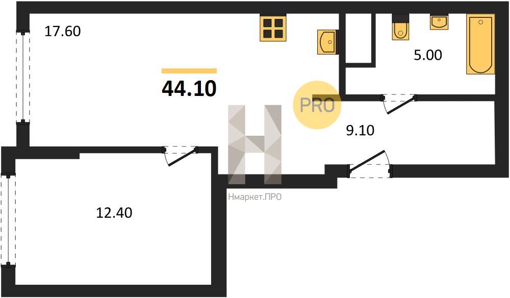 | Общая площадь: | 44.10 м2 |