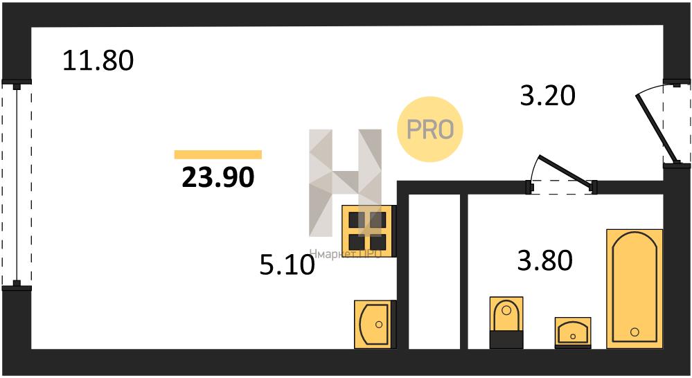 Купить студию, 23.90 м2 № 7134869