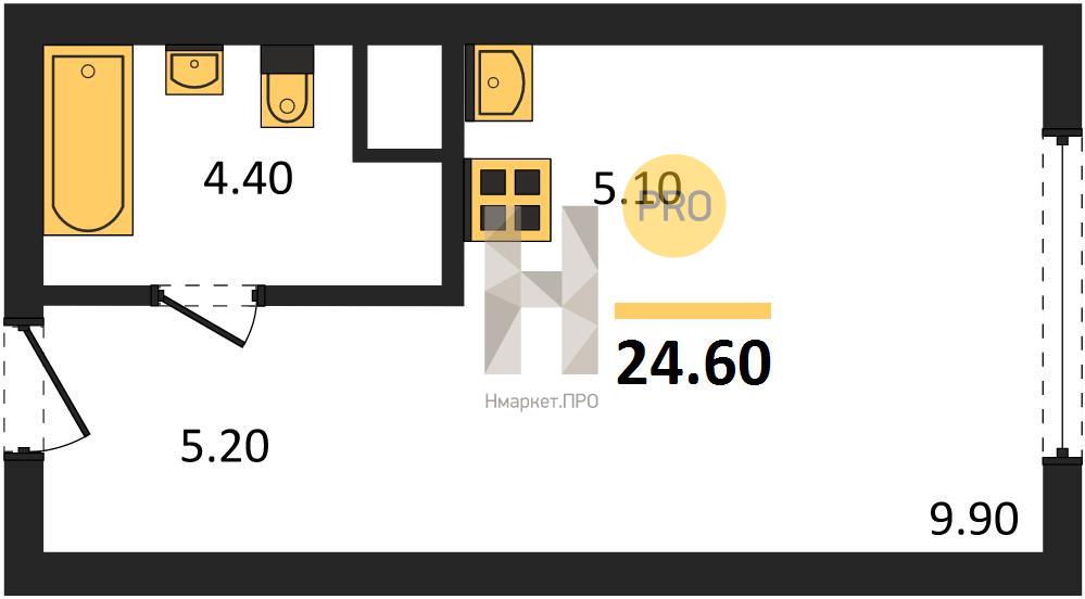 | Общая площадь: | 24.60 м2 |