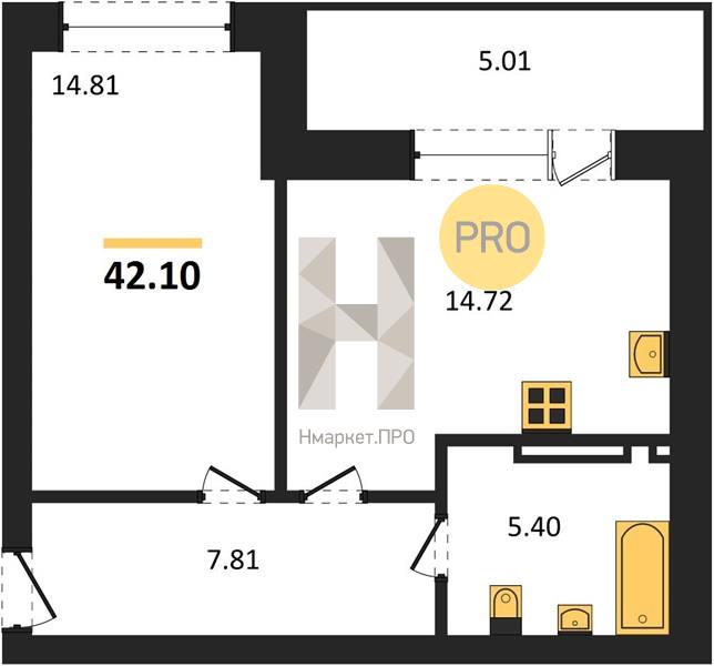Квартира: 1 к 42,10 кв.м., 5 этаж в комплексе Белинский, 1 очередь, корп.1, сдача: 4кв. , этажей: 7, адрес Белинского ул., д. 40, Застройщик: СЗ Смарт Билдинг.