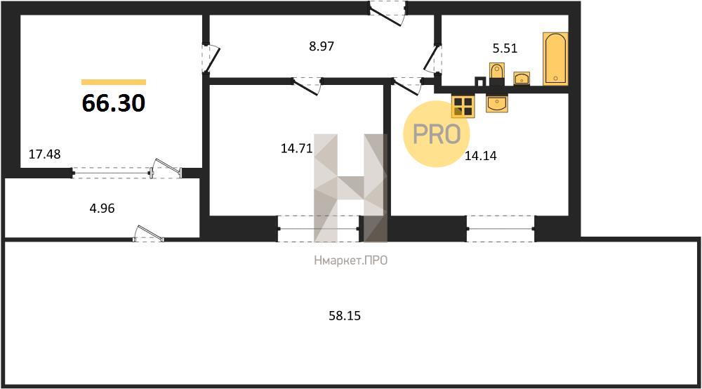 Квартира: 2 к 66,30 кв.м., 2 этаж в комплексе Белинский, 1 очередь, корп.1, сдача: 4кв. , этажей: 7, адрес Белинского ул., д. 40, Застройщик: СЗ Смарт Билдинг.