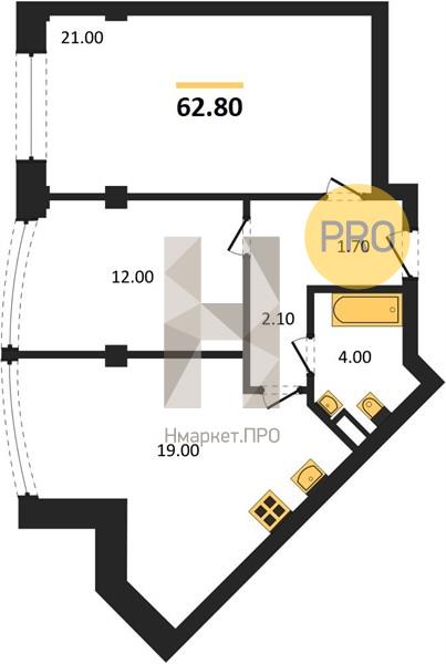 Квартира: 2 к 62,80 кв.м., 4 этаж в комплексе Белинский, 2 очередь, корп.1, сдача: 4кв. , этажей: 9, адрес Белинского ул., д. 40, Застройщик: СЗ Смарт Билдинг.
